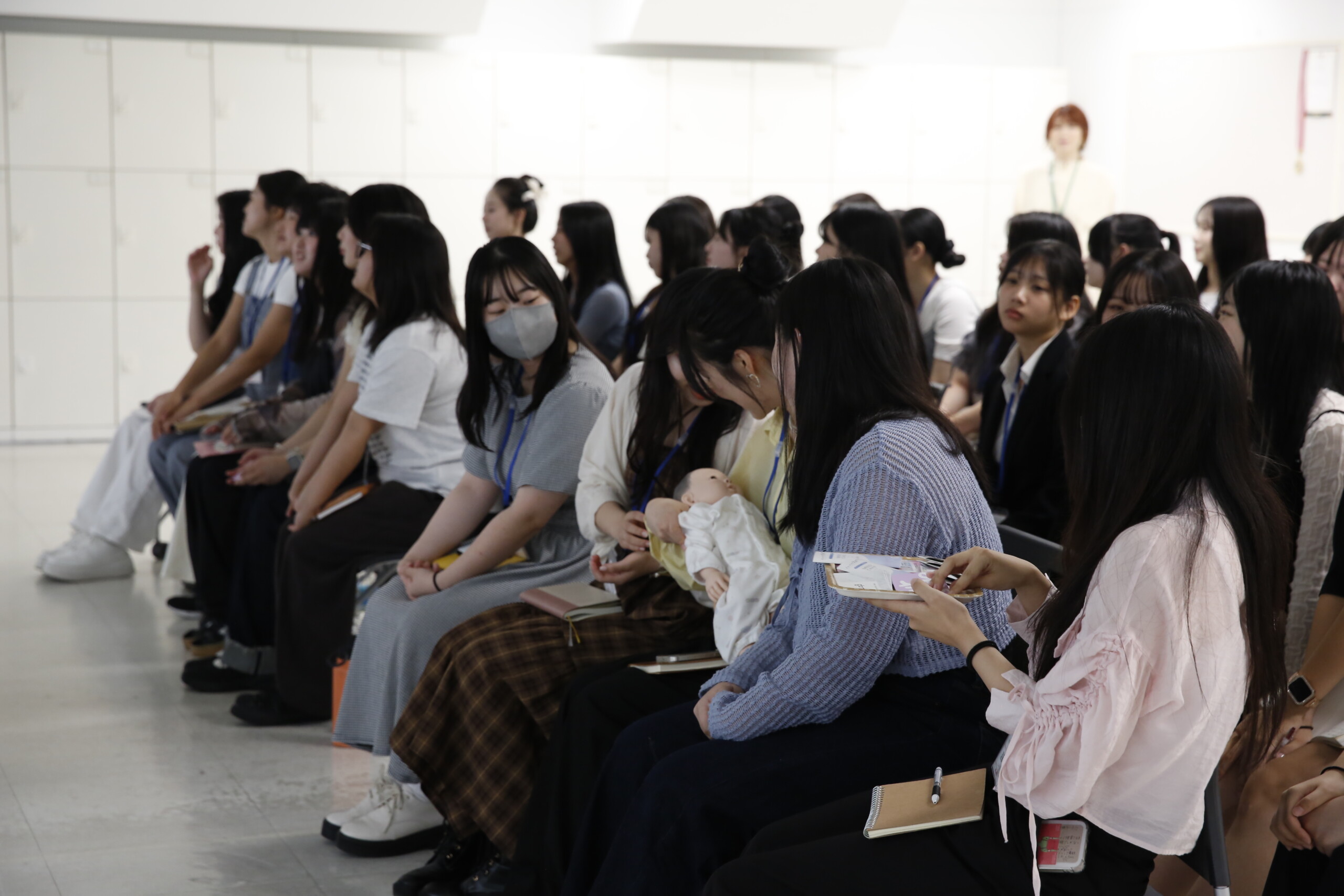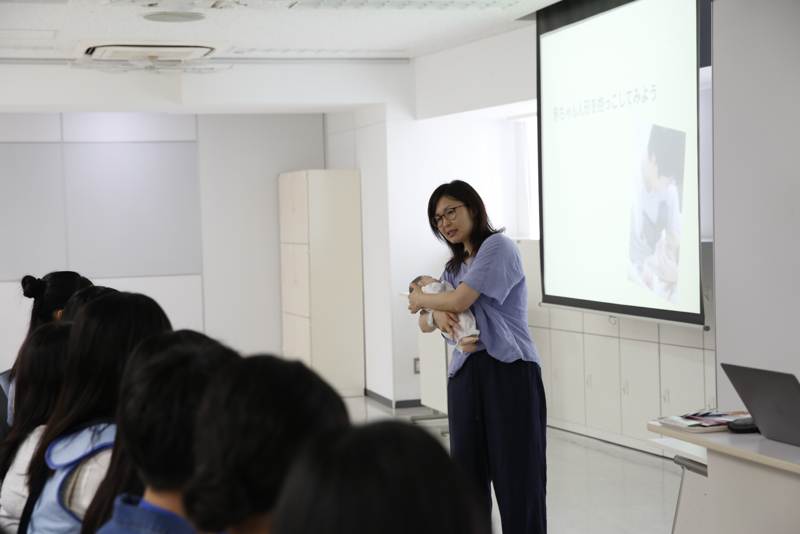 3ヶ月の赤ちゃん人形を抱っこする体験も。