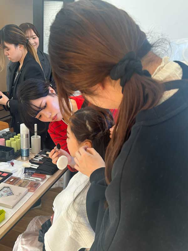 ヘア担当・メイク担当の二人一組で1人のモデルさんを対応し、